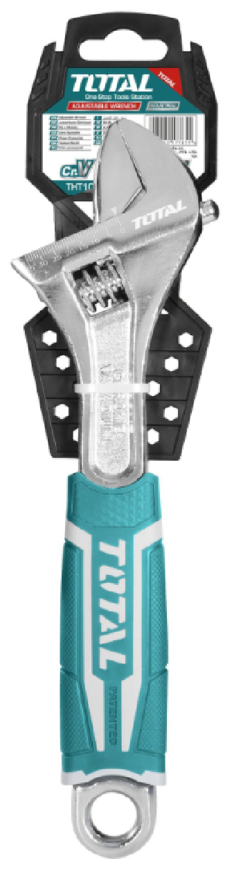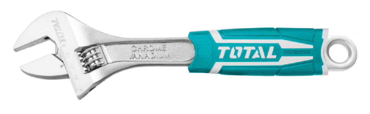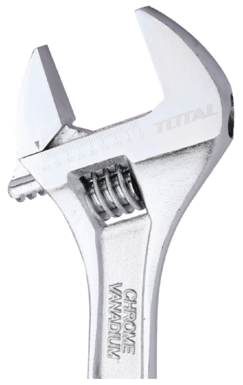 Chave ajustável com moleta central. Feita de aço carbono C45.