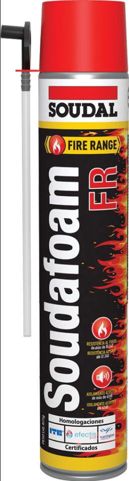 Espuma de poliuretano manual com classificação ao fogo até 240 minutos. Certificados internacionais de teste de vários países para várias configurações. De cor vermelha para identificar o desempenho como retardante do fogo. Disponível em latas de aerossol de 750mL.