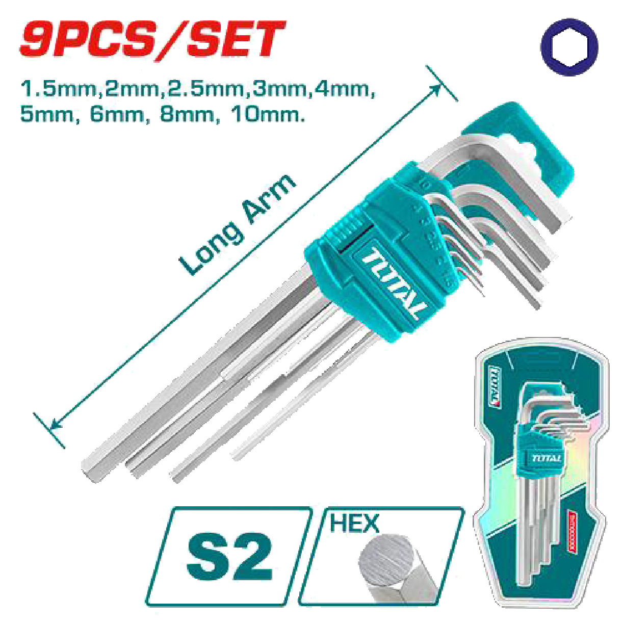 Jogo de 9 chaves Allen (Sextavadas)  de braço longo