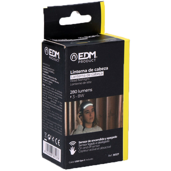 Lanterna Led 8W de Cabeça Frontal Recarregável - EDM