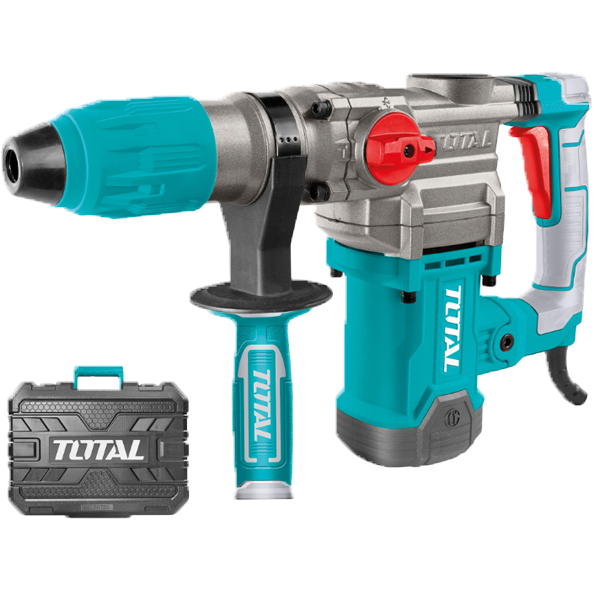 O martelo combinado TH1163855 foi projetado para perfuração e cinzelamento em materiais duros como concreto e pedra. Este modelo compacto e leve é ideal para aplicações versáteis, inclusive acima da cabeça. Oferece três funções ajustáveis via seletor: perfuração, perfuração com impacto e cinzelamento. Possui mecanismo de impacto pneumático para maior eficiência. O mandril SDS-plus conta com sistema semiautomático, e o limitador de profundidade metálico é ajustável. Conta com empunhadura ergonômica com revestimento Softgrip. Acompanha maleta de transporte.